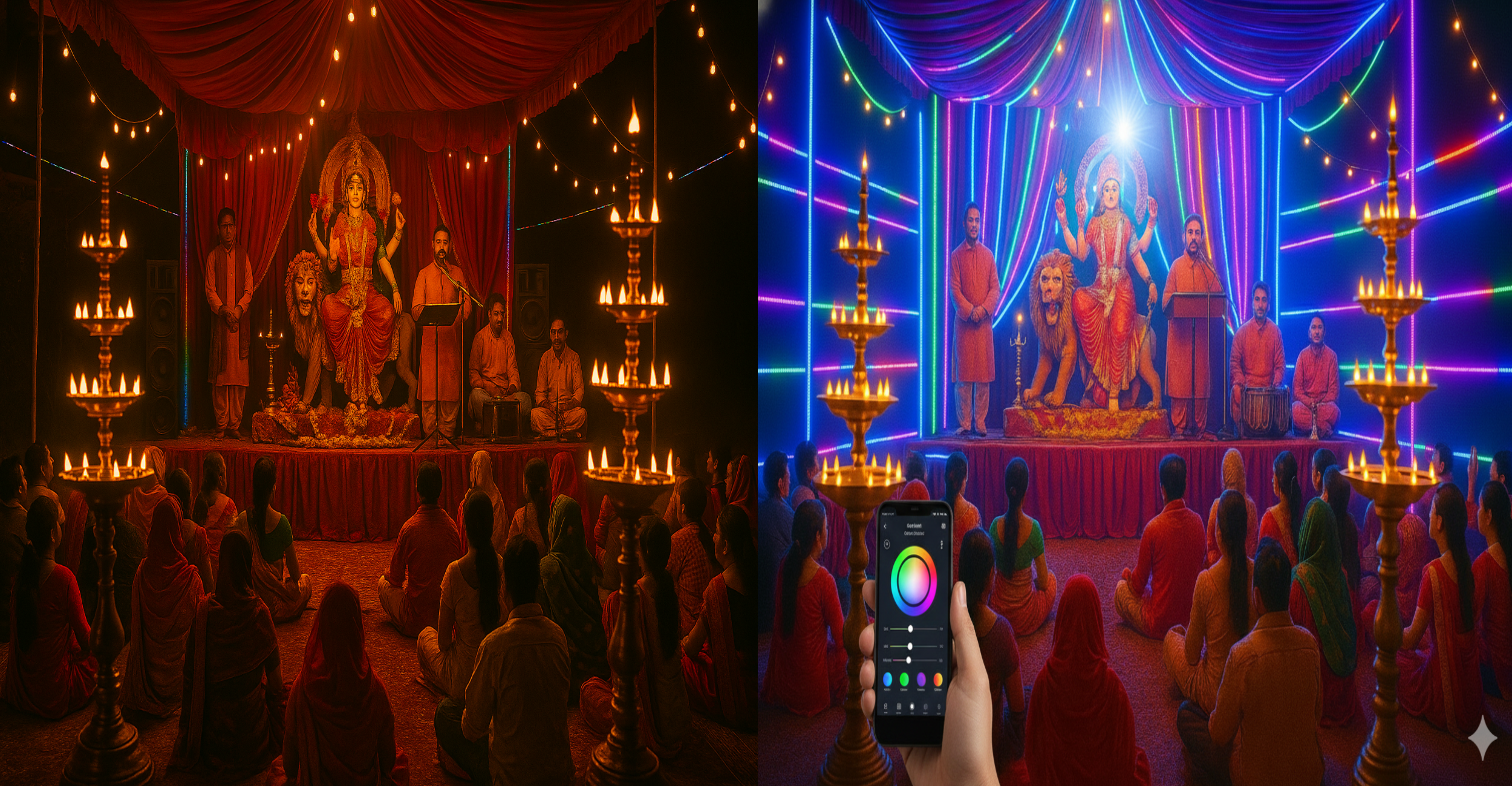 Colorful lighting that enhances spiritual and cultural celebrations.