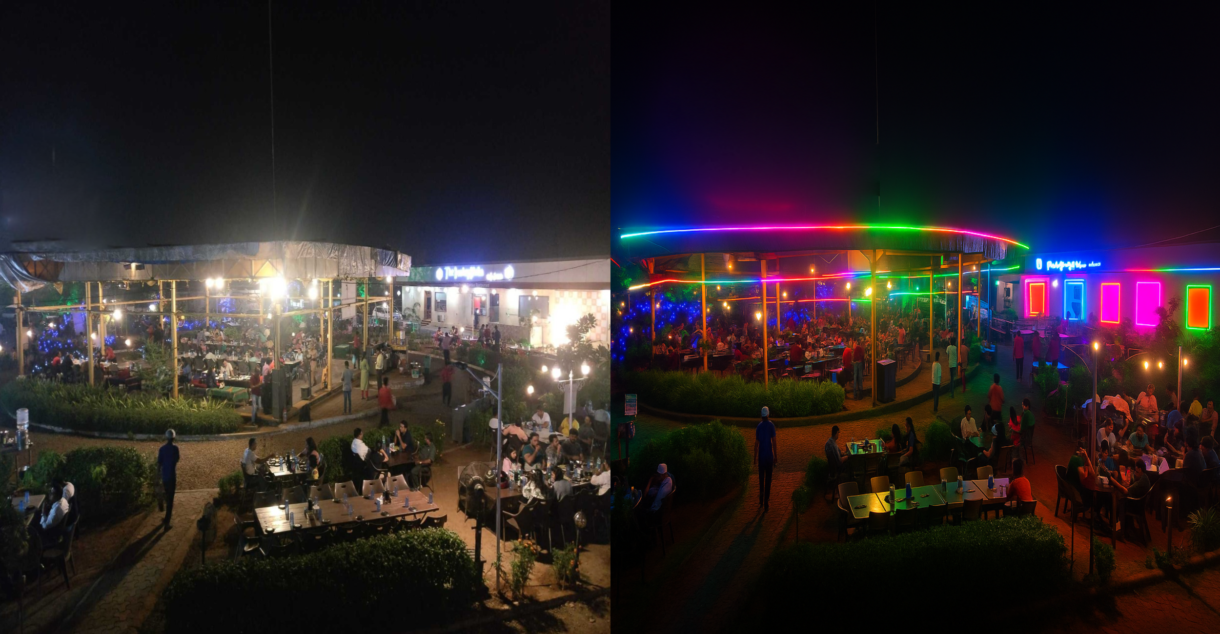 Colorful mood lighting that enhances ambience and boosts footfall.